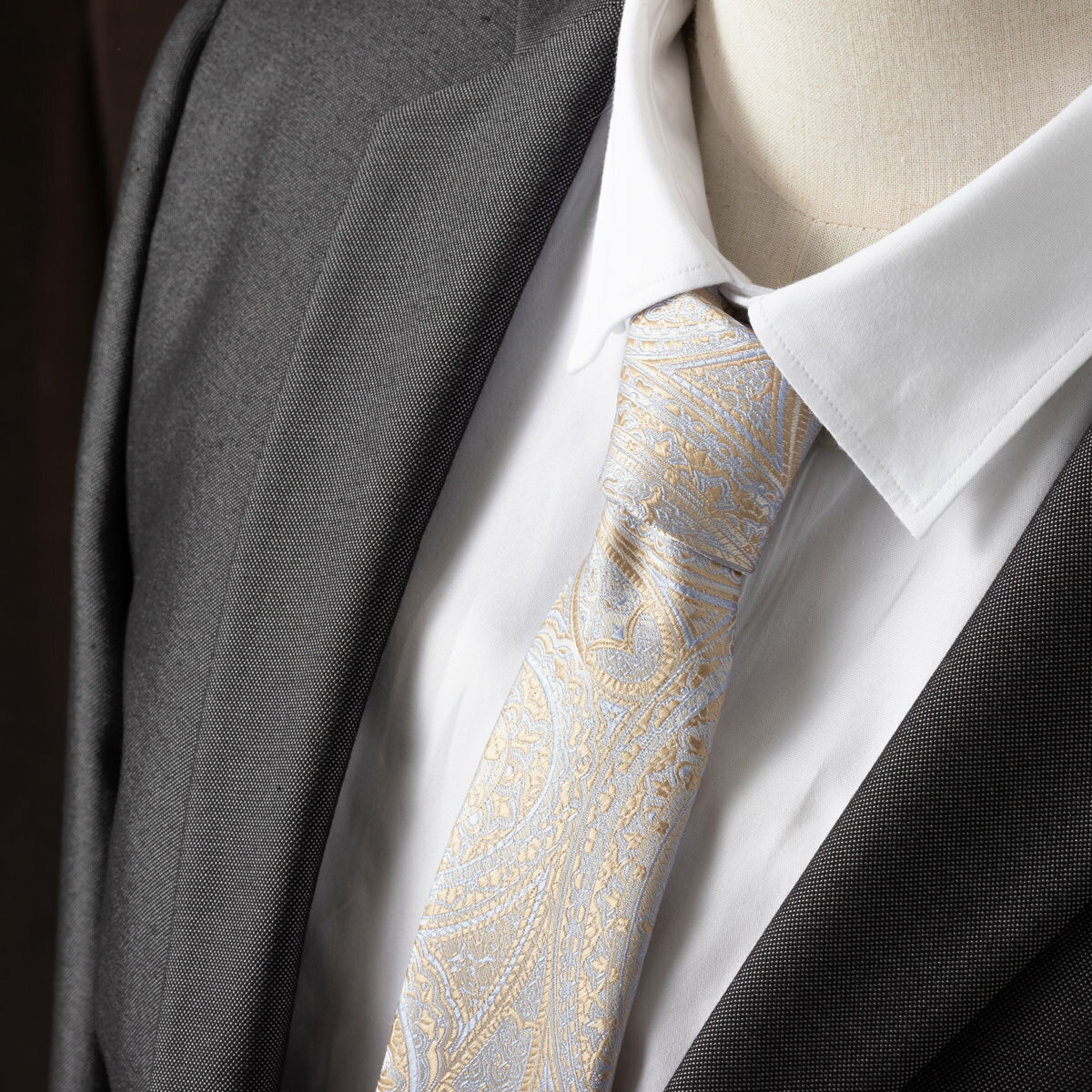 ペイズリーデザイン ネクタイ 洗えるイージーケア CHILLWORK ウォッシャブル 洗濯OK シャンパンゴールド クイトランニング チルワーク 英国ブランド 個性的 男性向け ビジネス 就活 ギフト 祝い 卒業式 結婚式 トラッド